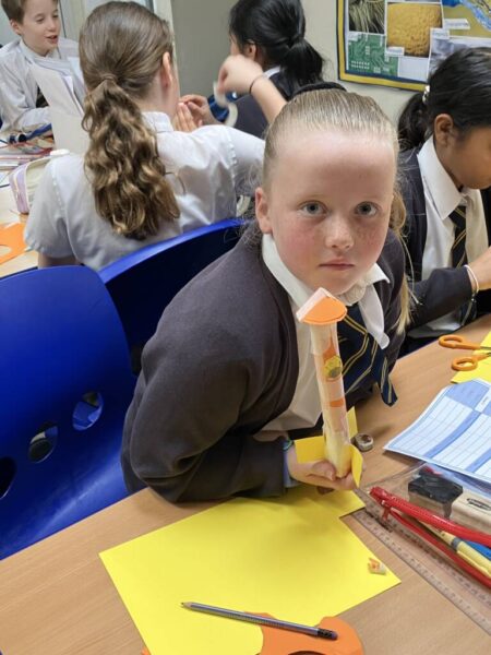 For the first half of the morning we were designing and then building paper rockets. Next we launched them outside with paper straws that we blew through. they were tested at an angle between 0 and 90 degrees- this was an important point!